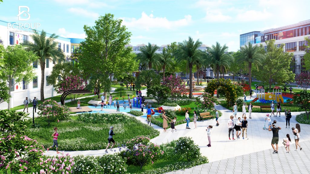 Giữa lòng khu dân cư, công viên trung tâm được ví như “trái tim xanh” của dự án — nơi cư dân thả mình trong không gian trong lành, dạo bước giữa hàng cây rợp bóng, và tận hưởng những buổi chiều an yên bên người thân.